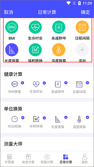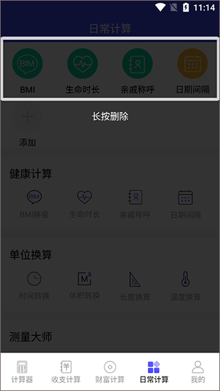 3、日常计算,包含生活中所需的各类计算需求,包含卡路里减肥时所需的BMI计算器,日期换算计算器:日期间隔、工作日推算;亲戚称呼计算,再也不用担心喊错长辈的称呼啦;还包含各类单位换算