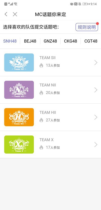 进入口袋48后,可以浏览各个分组的成员资料和相关活动;