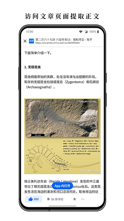 识别并提取页面中正文的内容,去除影响阅读的杂音,然后帮你保存起来,此过程全自动,无须干预。