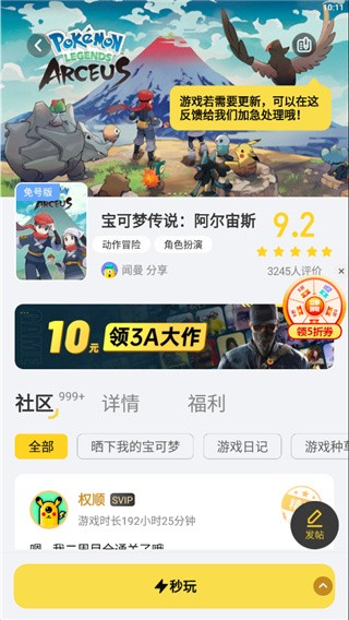2、打开宝可梦:阿尔宙斯,点击秒玩进入游戏;