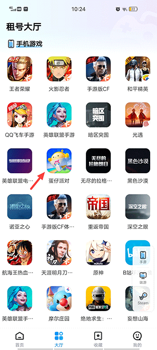 1、进入软件注册登录后,在“租号大厅”选择想要租的游戏类型。