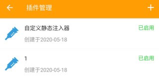 6、修改完成后,点击右上角的√保存即可。保存后,在设置中的插件管理 ,即可看到刚刚创建的静态注入插件,点击启用即可。