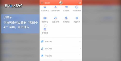 进入我的页面,下拉列表可以看到客服中心选项,点击进入。