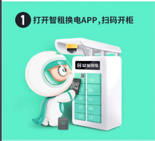 1、在智租换电柜前 打开智租出行APP 扫码开柜。