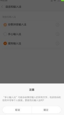 3、下面就可以选择切换输入法了,如果你的手机有安全别的输入法,需要切换到手心输入法