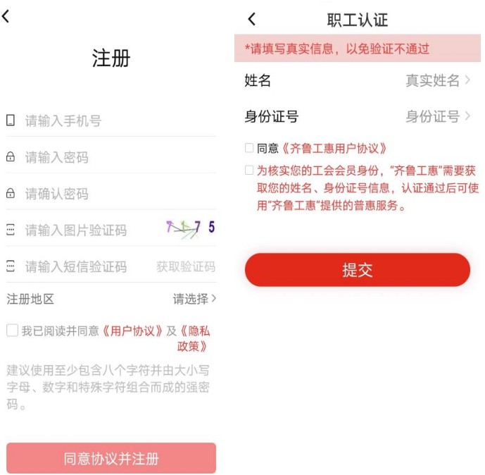 点击【登录/注册】,在页面右上方点击【注册】,填写正确信息,用手机号登录后选择我的工会【立即认证】,输入姓名及证件号码