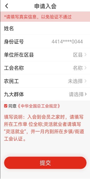 未备案的职工会员注册后可申请入会,进行实名认证