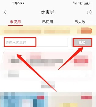 进入优惠券界面,输入优惠码,点击【兑换】。