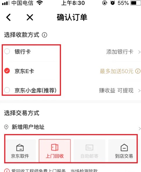 在以下页面选择收款方式、交易方式后点哄罩击【提交换钱】即可。