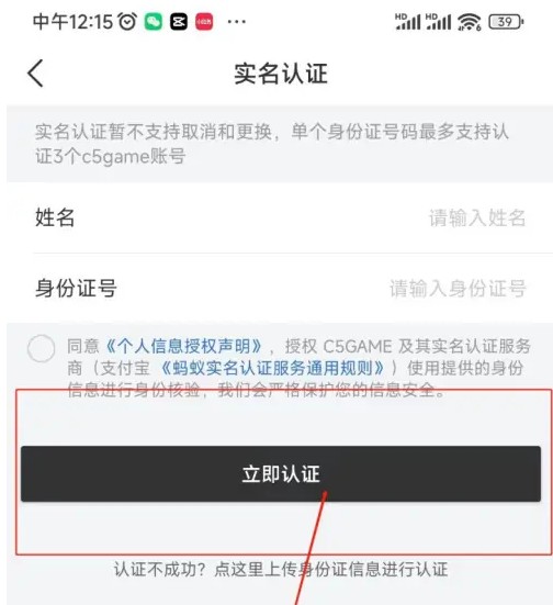 在跳转的新界面中输入姓名、身份证号后,点击“立即认证”,即可完成实名认证的操作