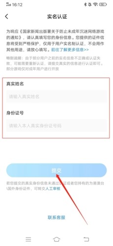 3、最后将想要修改的名字和身份证输入进入,点击下方的“提交”,这样就能成功修改了。