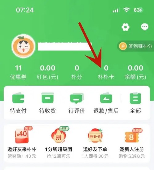 在朴朴超市界面点击一下朴朴卡。