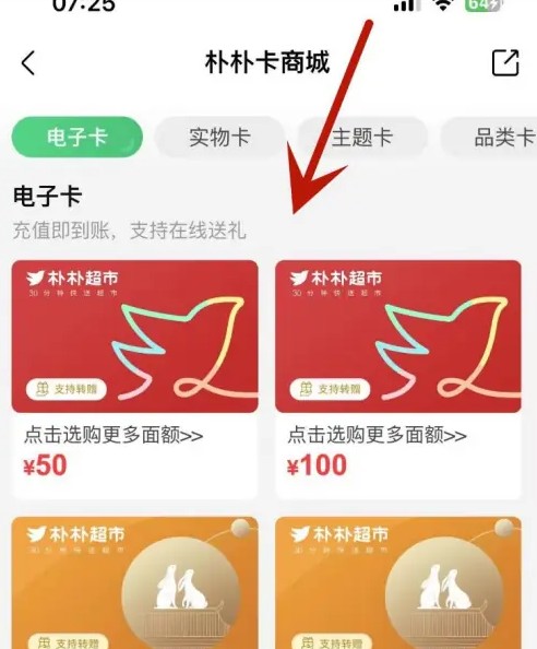 在界面进行购买,即可实现在朴朴超市App中购买电子卡了。