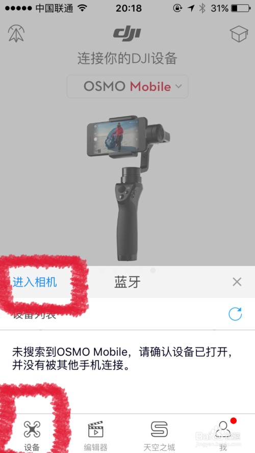 然后打开DJI Go APP→进入【设备】→点击【进入相机】;