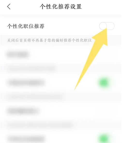在个性化推荐设置页面,点击个性化职位推荐关闭。