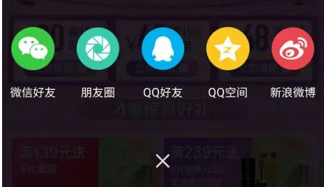 第三步:进入到活动主页后,可以#领取#满减优惠券#参与此次活动,然后点击主页右上方的分享按钮,即可通过#微信#/#QQ#/#微博#等不同的方式将活动分享给别人。