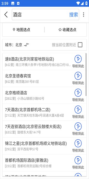 4、包括酒店也可以进行导航,还可以查看地图选点、收藏地点。
