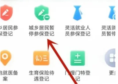 陕西医保服务app页面,点击选择城乡居民暂停参保登记项目。
