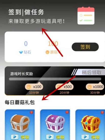 在个人中心做主线任务和每日签到也可获得大量蘑菇币。
