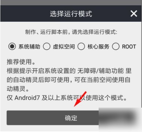 选择运行模式,点击‘确定’;