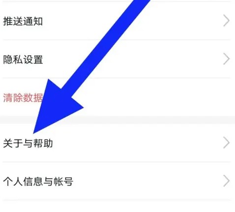 选择界面中【关于与帮助】点击,跳转进入界面;