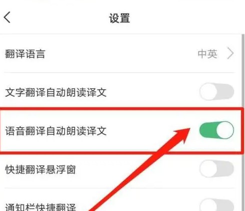 进入设置页面,点开语音翻译自动朗读译文按钮。